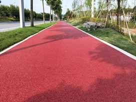將定量石子,水泥,膠結劑,水投入攪拌后攪拌均勻,由斗車拉送至施工現場,鋪裝前路基應保持濕潤,墊層需要振搗平整,面層需要用水泥抹平機收光抹平,施工完畢后需要用農膜進行覆蓋養生,兩天后進行灑水養護,養護期間應設隔離帶,避免行人通過。養護五到七天,面層干燥后噴涂面層封閉劑